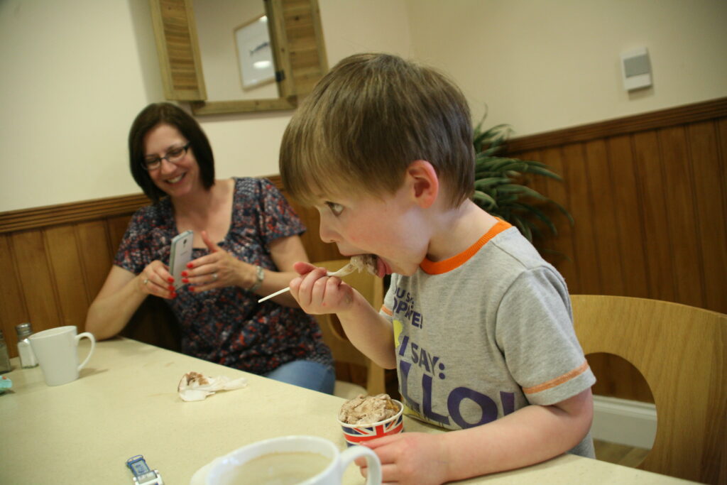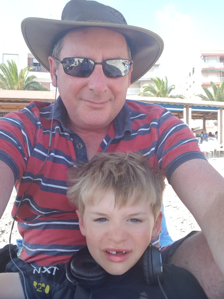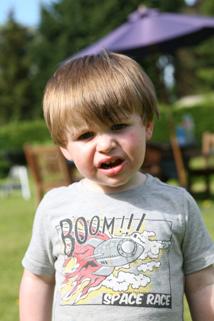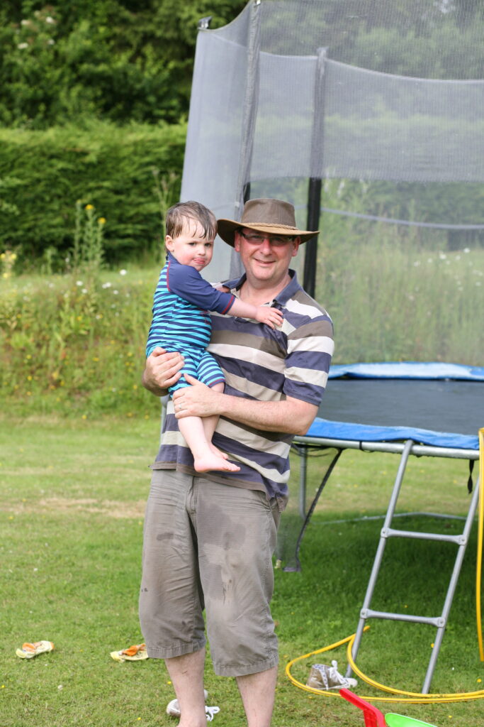 Looking ruddy faced, just like his daddy